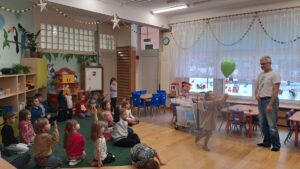 Zajęcia „Latać każdy może (sposoby latania)” w ramach „Karuzeli Eksperymentów” to warsztaty, które łączyły zabawę z nauką, pokazując różne sposoby latania, np. balony, samoloty i pióra. Dzieci mogły dowiedzieć się, w jaki sposób leci samolot, co go napędza oraz dlaczego my, jako ludzie, nie możemy samodzielnie latać.