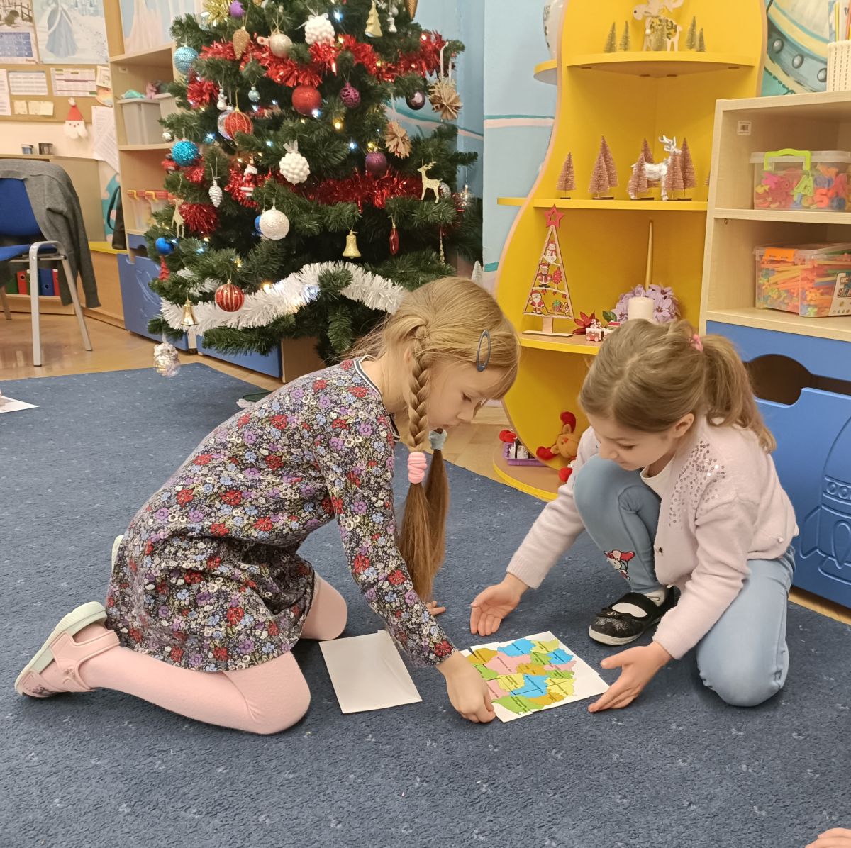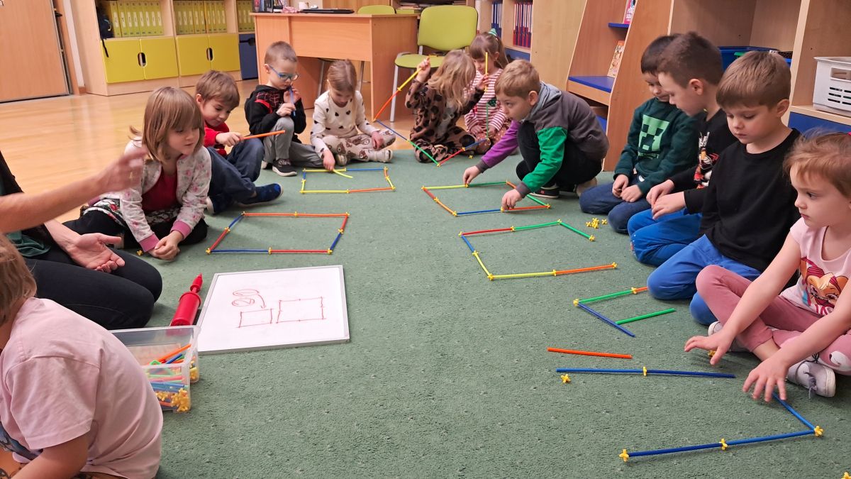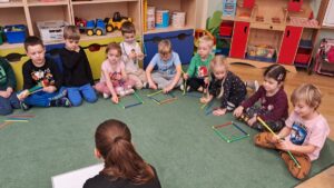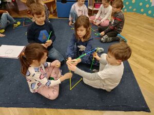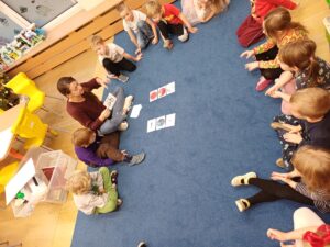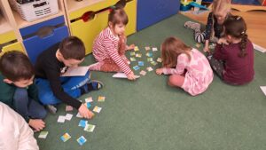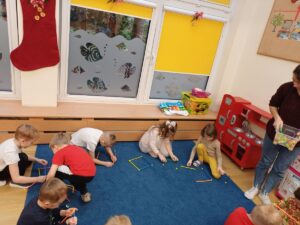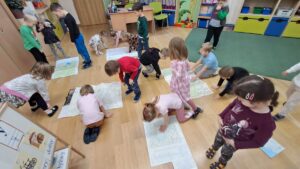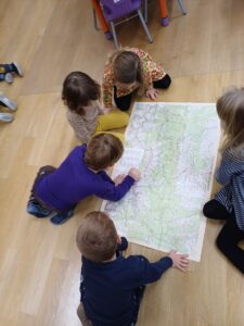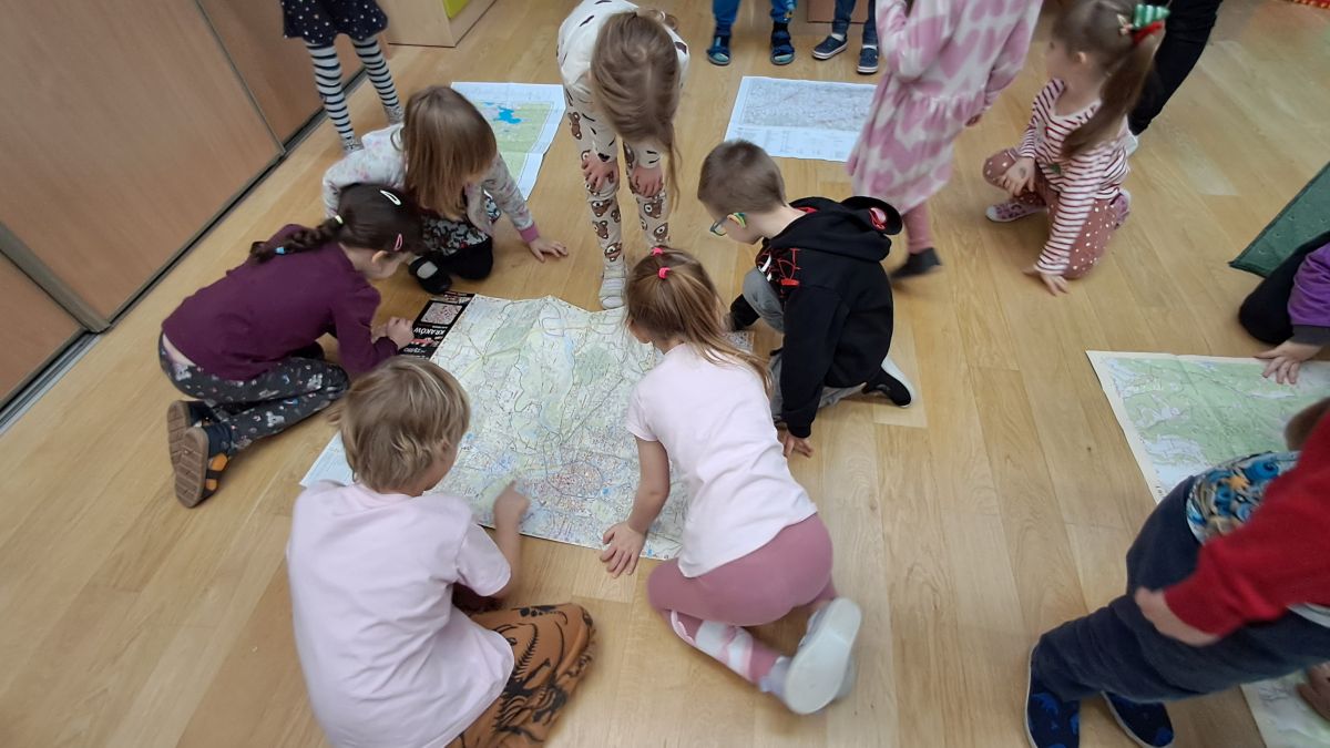 W grudniu zajęcia z „Karuzeli matematycznej” dotyczyły tematyki związanej z mapą. To trudne zagadnienie zostało przedstawione w prosty, ciekawy i interesujący sposób. Podczas zajęć dzieci z zainteresowaniem oglądały nieznane im papierowe mapy i atlasy samochodowe. Poprzez zabawę z układaniem kwadratu zapoznały się z pojęciem skali. Na koniec pani prowadząca zajęcia narysowała mapę sali przedszkolnej, a wybrane dziecko korzystając z tej mapy szukało „skarbu” ukrytego w sali. Już nie możemy doczekać się następnego spotkania.
