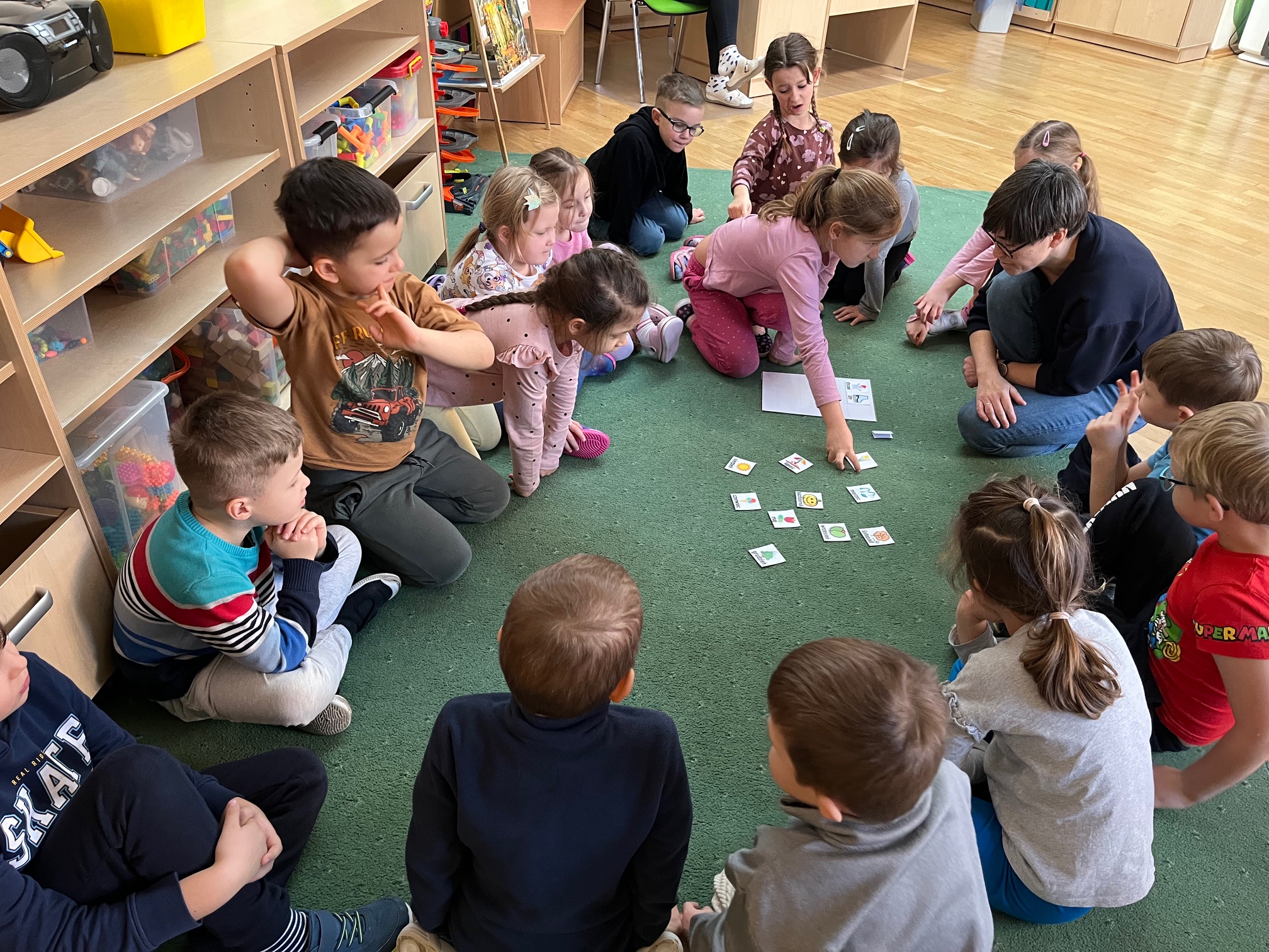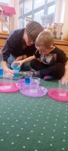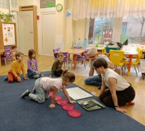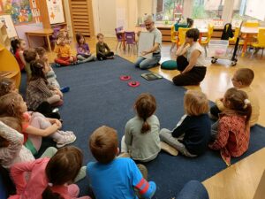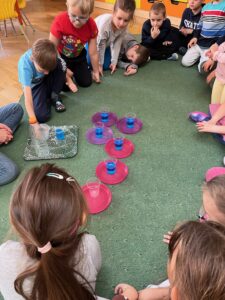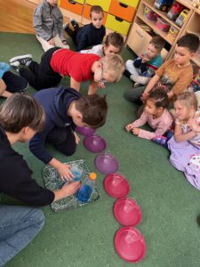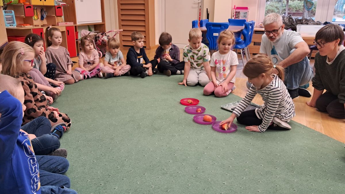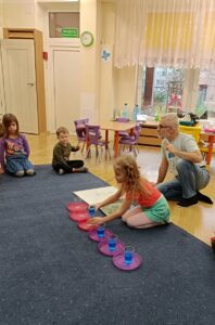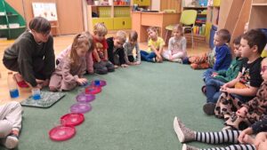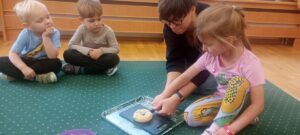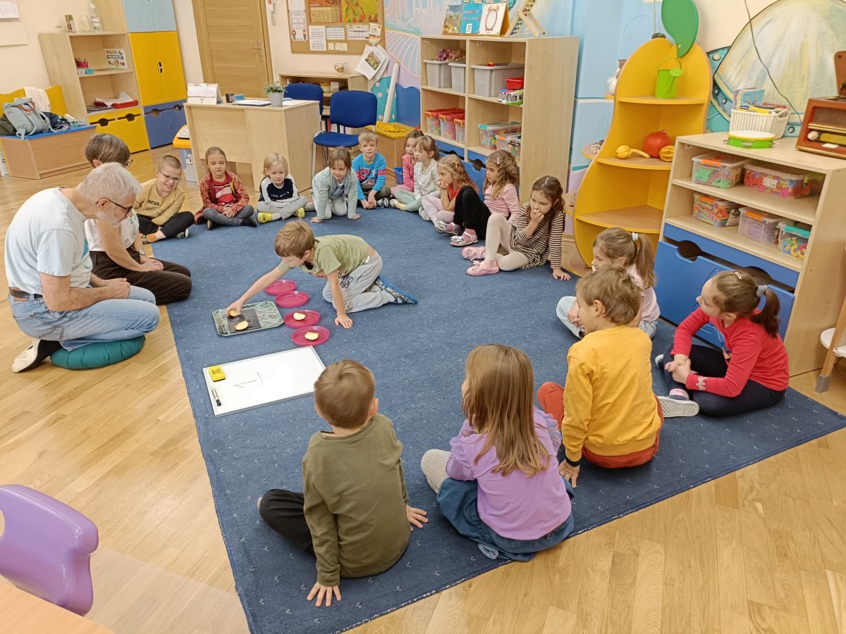 18 oraz 20 listopada nasze przedszkolaki miały przyjemność uczestniczyć w kolejnym spotkaniu z cyklu „Karuzela matematyczna”. Tym razem dzieci poznały matematyczną zabawę z ułamkami. Przedszkolaki uczyły się ułamków poprzez dzielenie i przekrajanie konkretnych produktów oraz przelewanie płynów do kubeczków. Zajęcia był pełne zabawy i nauki poprzez działanie. Dzieci rozwijały umiejętność logicznego myślenia, oraz koncentrację uwagi przy wykonywanym zadaniu. Poprzez zabawę dzieci nabierały pewności siebie oraz czerpały radość z odkrywania matematyki co jest kluczowe dla dalszego rozwoju naszych podopiecznych.