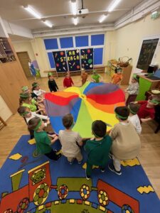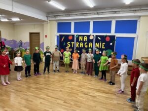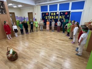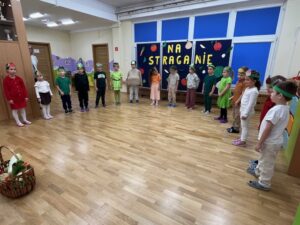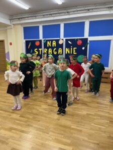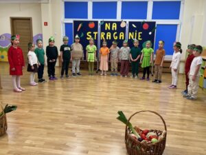 W ostatnich dniach listopada, w naszym przedszkolu odbyły się wyjątkowe jesienne występy dzieci z grupy Puszczyków dla najmłodszych kolegów z przedszkola oraz „Starszaków” ze żłobka. Spotkania miały radosny i edukacyjny charakter, a ich głównym tematem było promowanie zdrowego odżywiania. Dzieci zaprezentowały wiersz „Na straganie”, który wprowadził wszystkich w kolorowy świat warzyw, a następnie zaśpiewały piosenki i wykonały taniec o tematyce zdrowotnej. Zaproszeni goście rozwiązywali zagadki na temat jesiennych warzyw. Nie zabrakło również chrupania marchewek i kalarepek, które były pyszną i zdrową przekąską. W części plastycznej dzieci wykonały piękne prace przedstawiające marchewki, rozwijając swoją kreatywność i zdolności manualne. Na zakończenie spotkania przedszkolaki wręczyły najmłodszym wyjątkowy prezent – urocze sówki od przedszkola „Puszczykowy Zakątek”, które będą miłą pamiątką tego wydarzenia. Występ dostarczył wszystkim wiele radości i był doskonałą okazją do wspólnej zabawy oraz nauki o zdrowym stylu życia.
