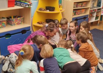 26 marca 2025 r. dzieci z grupy III „Misie” odwiedziły lokalną Bibliotekę dla Dzieci i Młodzieży przy ul. Barwnej. Przedszkolaki z dużym zainteresowaniem uczestniczyły w ...