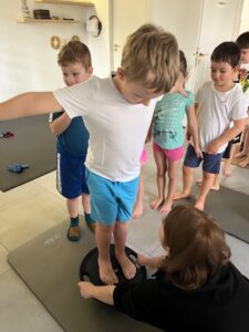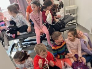 Grupa Puszczyków odwiedziła dziś salon masażu i fizjoterapii „Instrukcja Ciała”. Podczas wizyty dzieci wzięły udział w zajęciach sportowych, przygotowanych specjalnie dla najmłodszych. Poznały również na czym polega praca fizjoterapeuty oraz dietetyka – mogły zobaczyć wykorzystywane narzędzia, ćwiczenia oraz dowiedzieć się, jak dbać o zdrowe ciało. Na zakończenie Puszczyki dostały smaczne i zdrowe jabłka. Serdecznie dziękujemy Rodzicom Łucji – za dzisiejsze spotkanie.