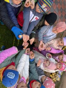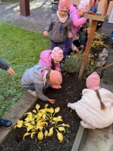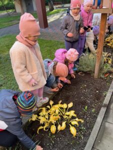 Dzieci z zaangażowaniem wybierały miejsca do sadzenia, umieszczały cebulki w ziemi i delikatnie je przykrywały. Zajęcia były okazją do nauki o cyklu życia roślin, zmianach pór roku oraz odpowiedzialności za przyrodę.