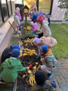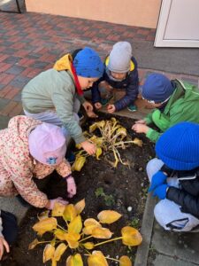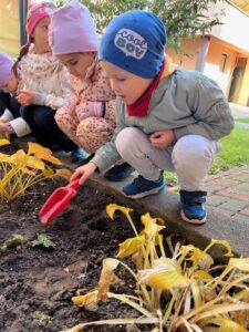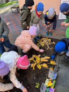 W słoneczny, jesienny dzień dzieci z grupy Puszczyków wzięły udział w ogrodniczych zajęciach na świeżym powietrzu. Pod opieką nauczyciela sadziły cebulki wiosennych kwiatów – tulipanów, krokusów i żonkili – na przedszkolnym ogródku.